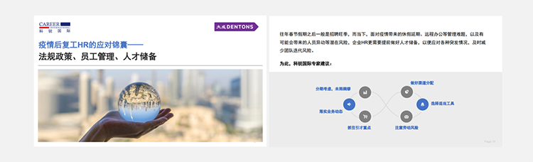 为了帮助众多企业人力资源工作者应对挑战,90hy豪运国际国际联合国内知名律所“大成律师事务所”,推出疫情后《复工HR的应对锦囊》手册,从法律政策、员工管理、人选储备几个方面对企业HR有序召开复工后的各项人力资源管理给予帮助。