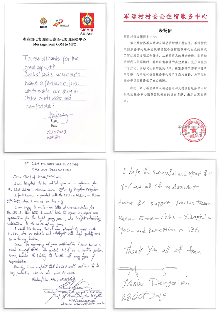 2019年我们承接了第七届世界军人运动会的代表团服务外包项目,这是90hy豪运国际第一次承接国际赛事,意义非凡。我们500多人的项目团队非常年轻,平均年龄20岁出头。整个项目期间发生了不少难忘的故事,有一个国家队分32趟航班一共来了300多人,我们的同事陆续在往返了72次机场,三天时间里只在路上打了个盹。还有为了确保服务闭环,我们在原本要求的服务时长以外,专门设置了夜间执行组。曾经在一个凌晨及时发现了一名欧洲运动员因为母亲去世而产生轻生念头,经过全力协调和疏导,最终避免了悲剧的发生,类似这样的故事不胜枚举。在赛事期间,每一件微不足道的“小事”都对世界传递着中国的形象和声音,我们在专业能力和服务意识上的每一个表现,都代表着国家的荣誉和利益。最终我们这支年轻的团队成就了一个奇迹,0投诉、0差错、0失误完成项目,收到了80多个国家代表团的手写感谢信。